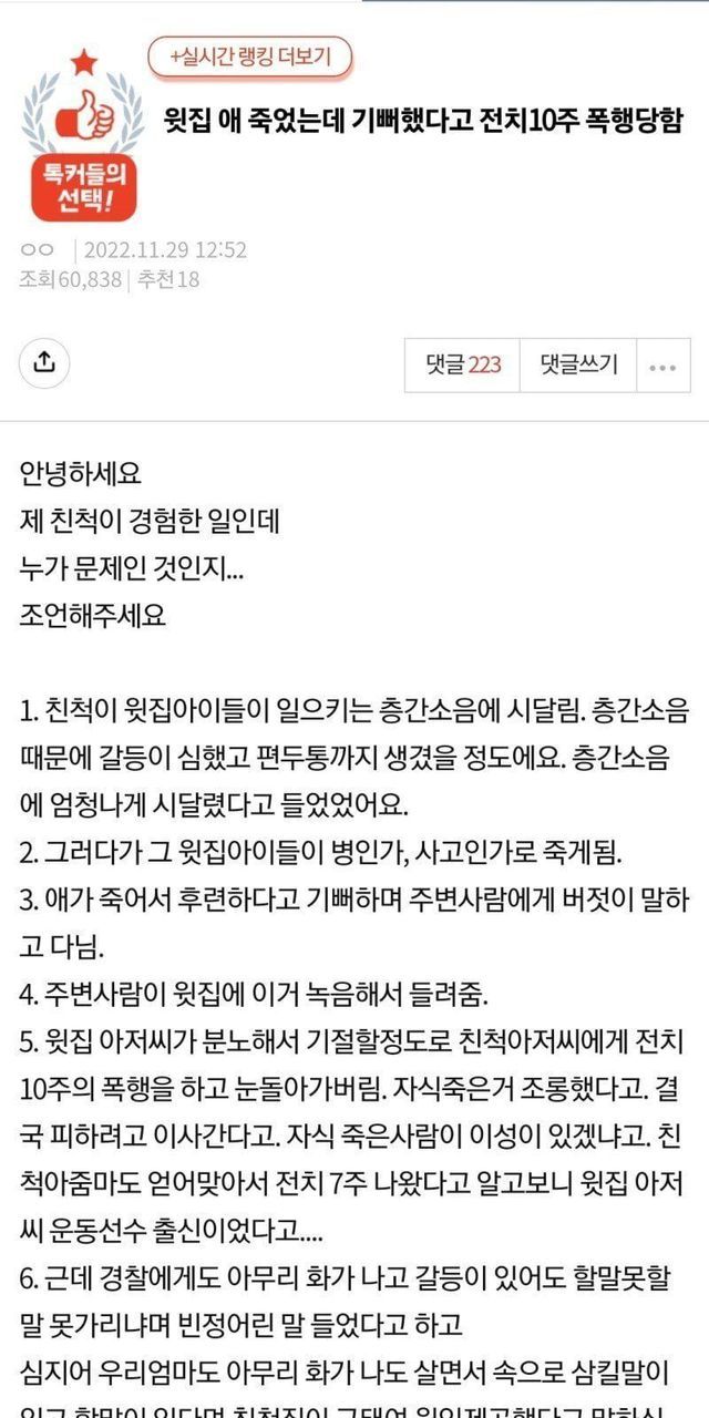 윗집 애 죽어서 기뻐하다 두들겨 맞은 판녀